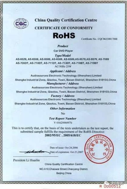 ROHS证书
