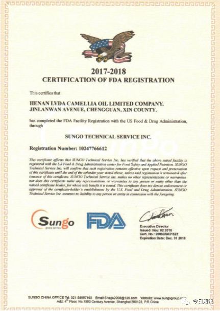 Remark:FDA 只是要注册登记,不需要认证书。