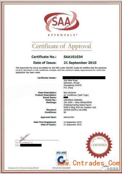 SAA认证。SAA认证为澳大利亚的标准机构为Standards Association ofAustralian旗下认证,所以很多朋友把澳大利亚认证称为SAA。SAA是进入澳大利亚市场的电器产品须符合当地的安全法规,即业界经常面对的认证。由于澳大利亚和新西兰两国的互认协议,所有取得澳大利亚认证的产品,均可顺利地进入新西兰市场销售。所有电器产品均要做安全认证( SAA )。SAA 的标志主要有两种,一种是形式认可,一种是标准标志。形式认证是只能样品负责,而标准标志是需每个进行工厂审查的。目前国内申请 SAA 认证有两种方式,一种是通过 CB 测试报告转,若没有 CB 测试报告,则也可以直接申请。一般情况下,IT AV 灯具 小家电类常见产品申请澳大利亚SAA认证的周期是3-4周,如果产品质量不达标,可能日期会有所延长。提交报告到澳州审核时需要提供产品插头的SAA证书(主要是针对带插头的产品),不然不给予办理,产品里面的重要的元器件SAA证,像灯具需要提供灯具里面变压器SAA证书,不然澳州审核资料不通过.